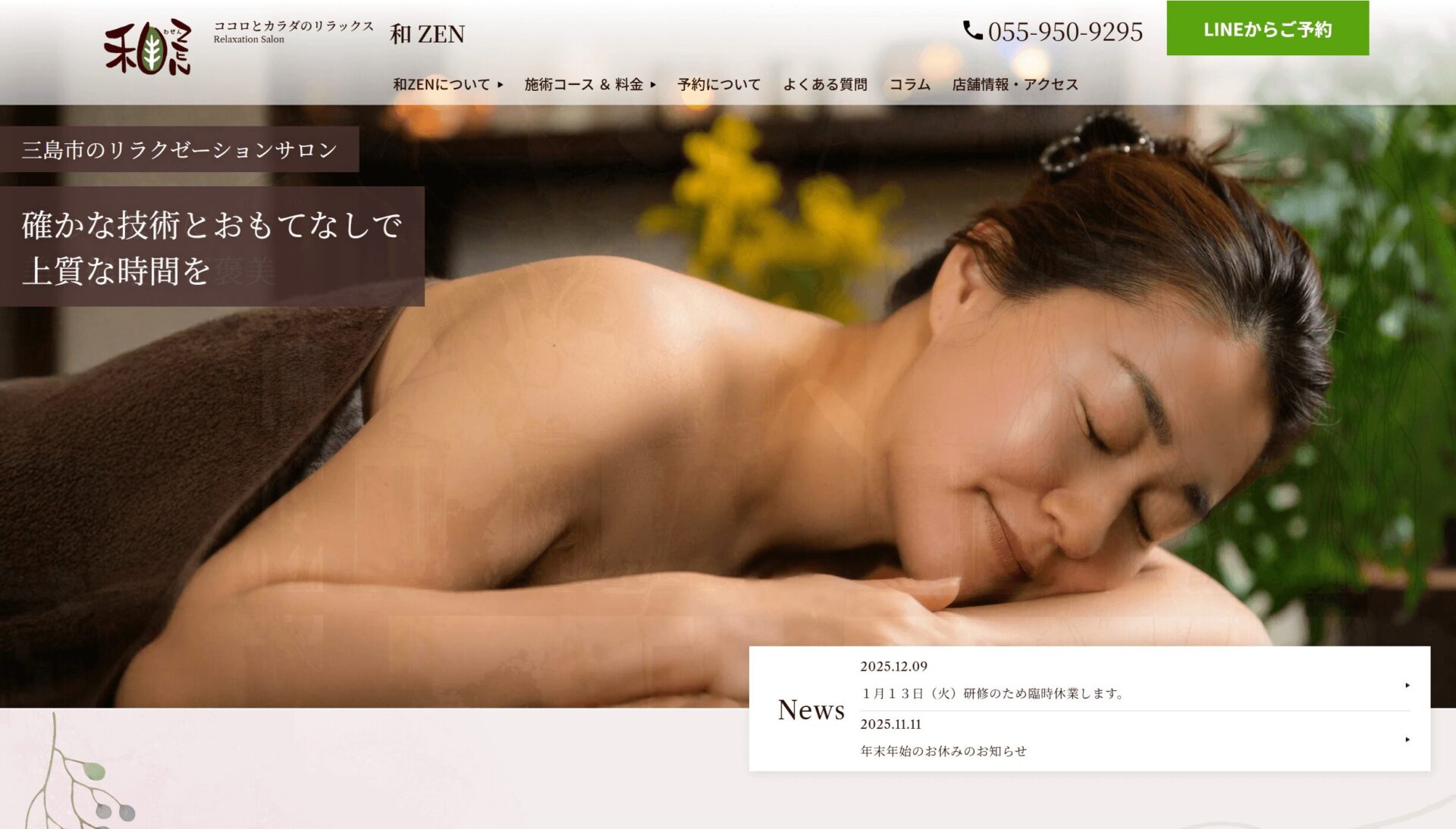 概要:リラクゼーションサロン和ZENさまホームページのWordPressコーディングを担当しました